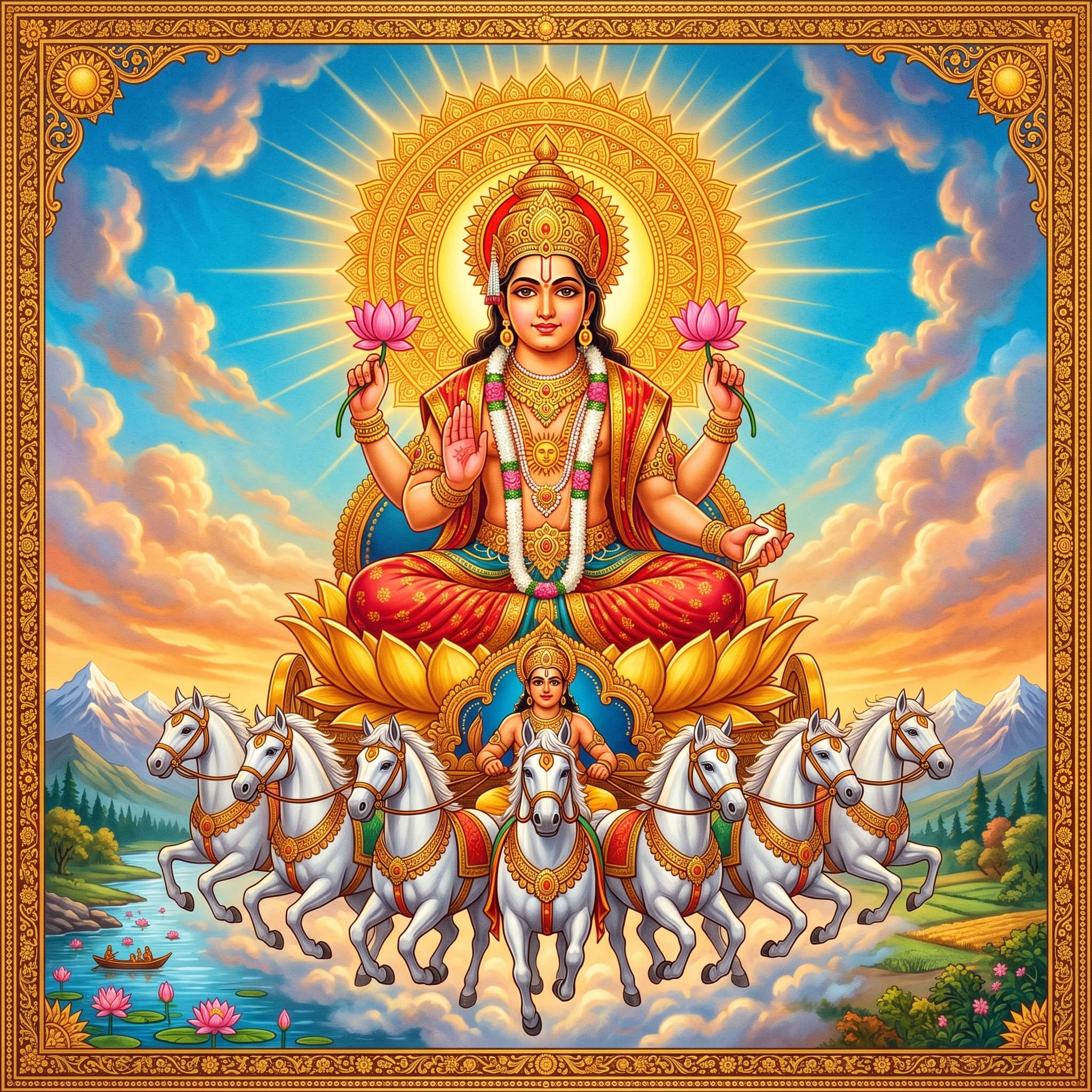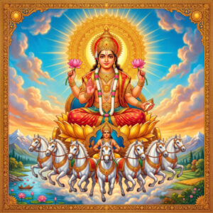 The Aditya Hridaya Stotram Yagya is dedicated to Surya, the sun deity and one of the principal deities of the Vedic tradition. The Aditya Hridaya Stotram comes from the Yuddha Kanda of the Valmiki Ramayana, where the sage Agastya teaches it to Rama on the battlefield. The name translates as “the heart of Aditya,” Aditya being a name of Surya as son of the cosmic goddess Aditi.